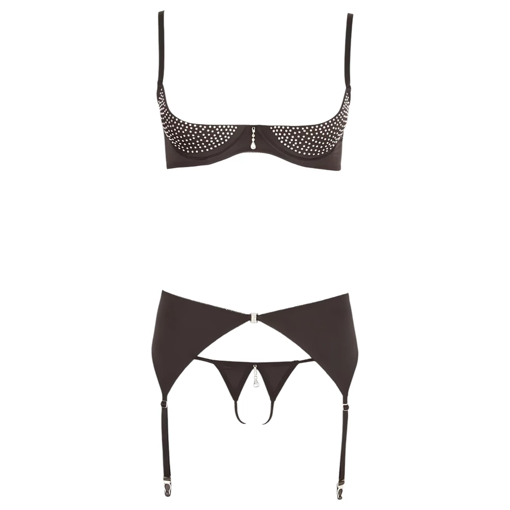 Abierta Fina - csillogó köves fehérnemű szett (fekete)