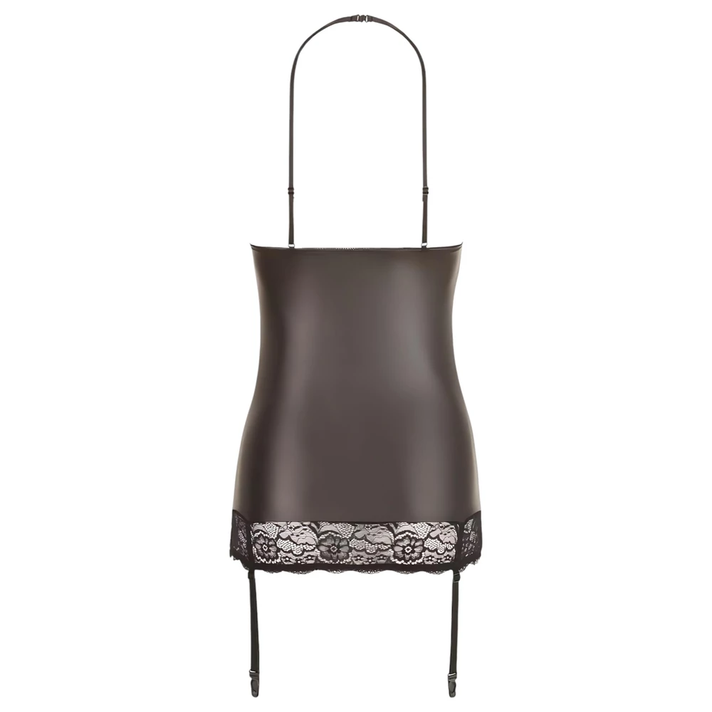 Ez a csábító, nyitott kosarú fehérnemű ruha gyönyörű csipke betétekkel és egy dekoratív strasszos gyűrűvel teszi felejthetetlenné a dekoltázst.