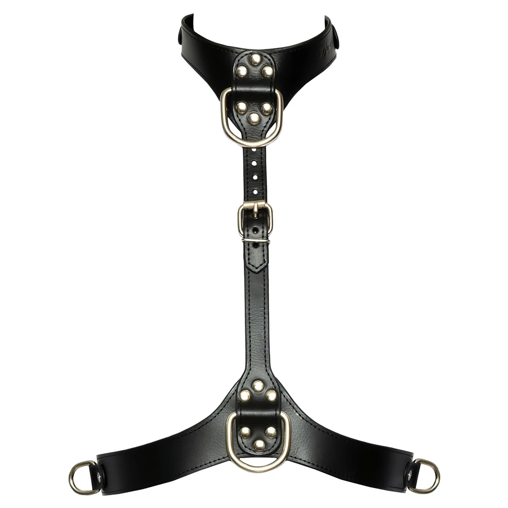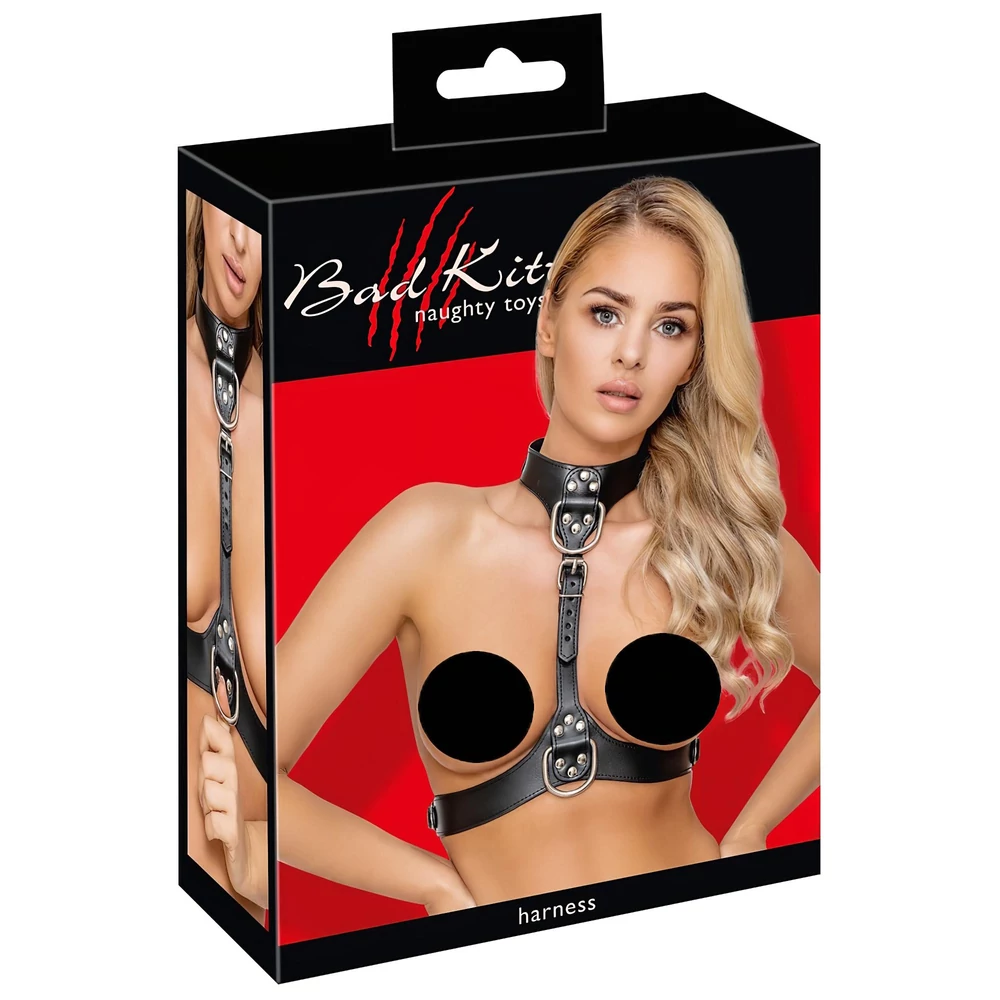 Bad Kitty - bőrhatású testhám D-gyűrűkkel (fekete)