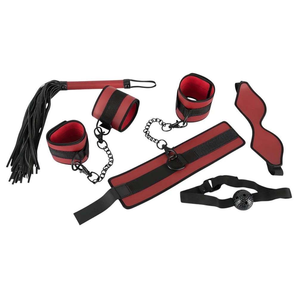 Bad Kitty - tépőzáras kötöző szett - piros-fekete (5 részes)