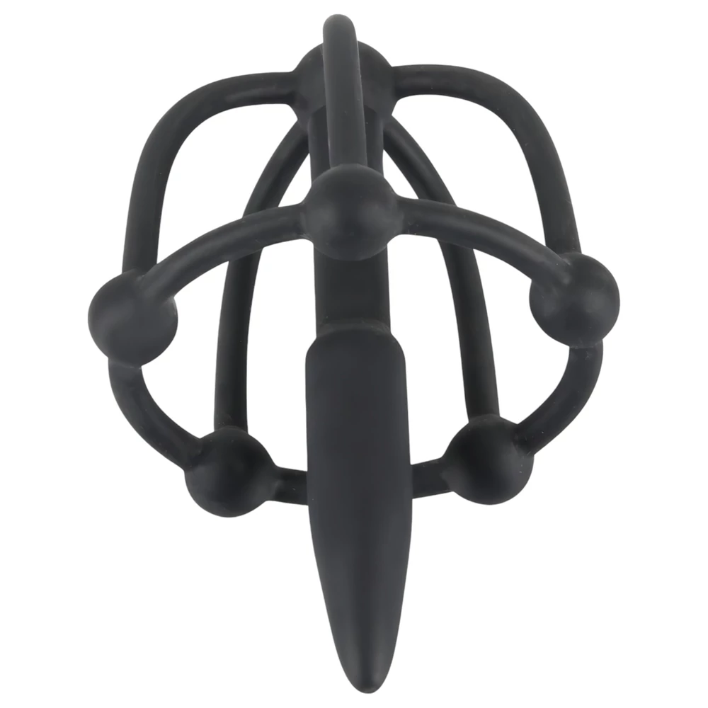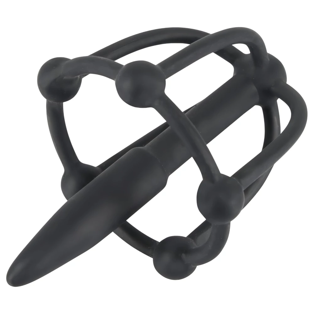 Penisplug - szilikon makk ketrec dilátorral (fekete)