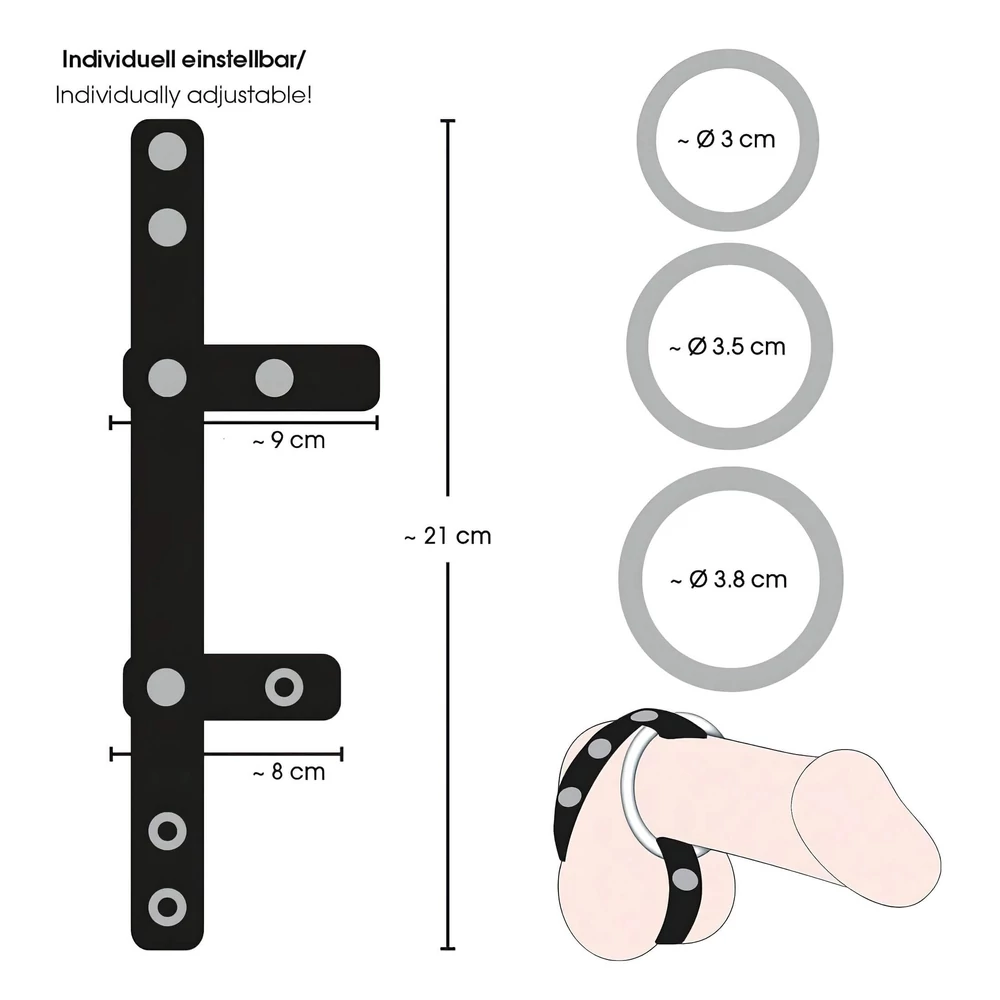 - 3 cserélhető, nikkelmentes fém péniszgyűrű (Ø 3 cm, Ø 3,5 cm, Ø 3,8 cm)