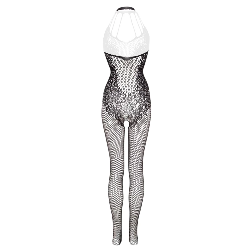 - 1 darab fekete Amara bodystocking virágmintával és nyitott ágyékrésszel (tanga nélkül)