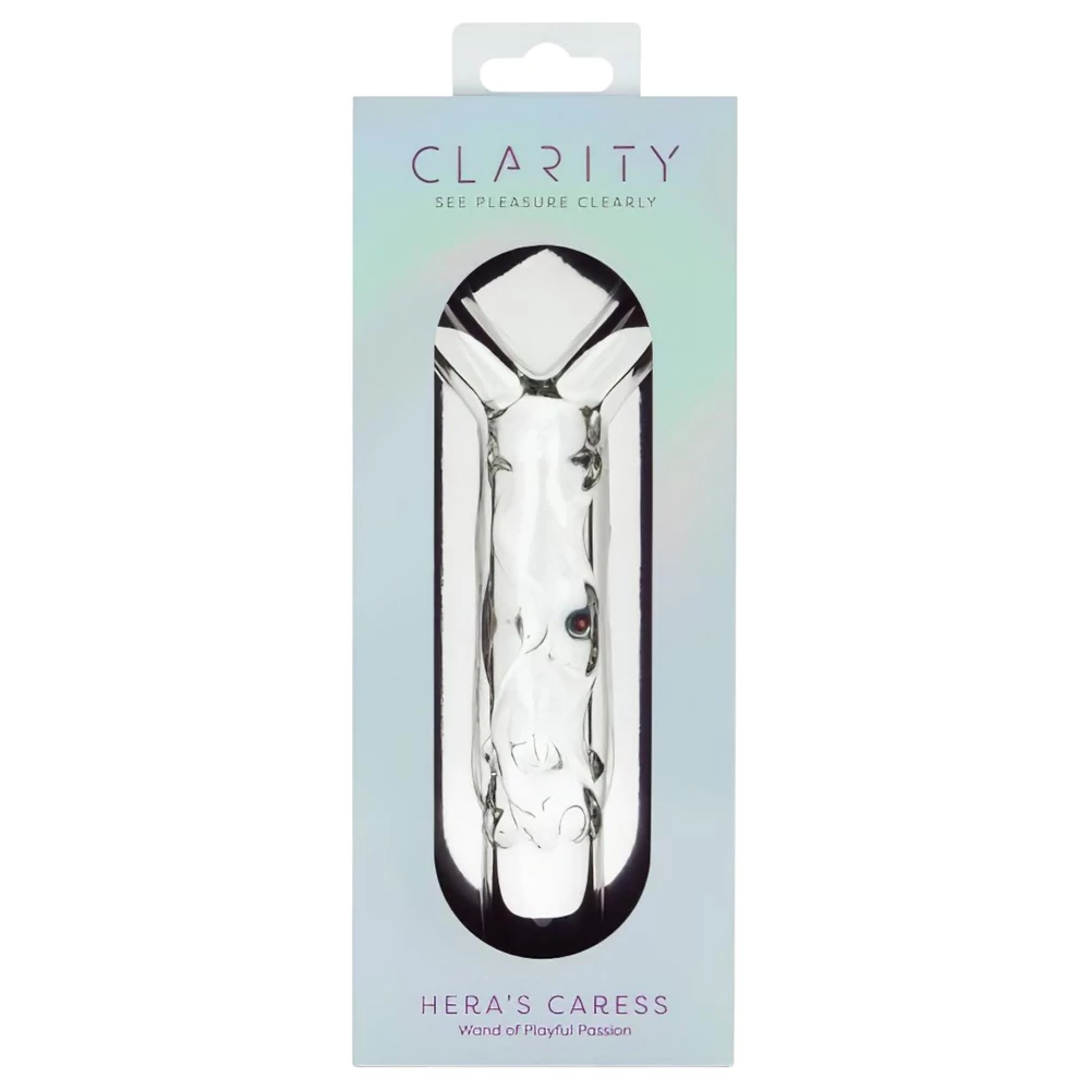 A Clarity üveg dildó egyedülállóan elegáns kialakítása nemcsak látványos, de rendkívül praktikus is. Karcsú, finoman ívelt szára ideális a G-pont vagy a prosztata stimulálására, miközben a sima, seamless felszín könnyed siklást biztosít. A szív alakú fogantyú biztonságos fogást ad, így kényelmesen irányítható akár szóló játék, akár páros élmények közben. A hőjáték lehetősége tovább fokozza a stimulációt: melegítve nyugtató, hűtve pedig izgalmas élményt nyújt.