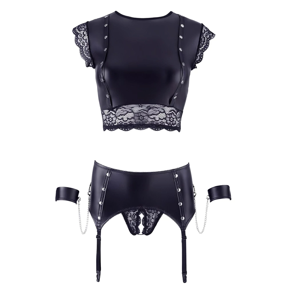 - Sokoldalú viselet: A szett kombinálja a csábító fehérneműt és a bondage elemeket, így egyszerre nyújt esztétikai élményt és izgalmas játékot.