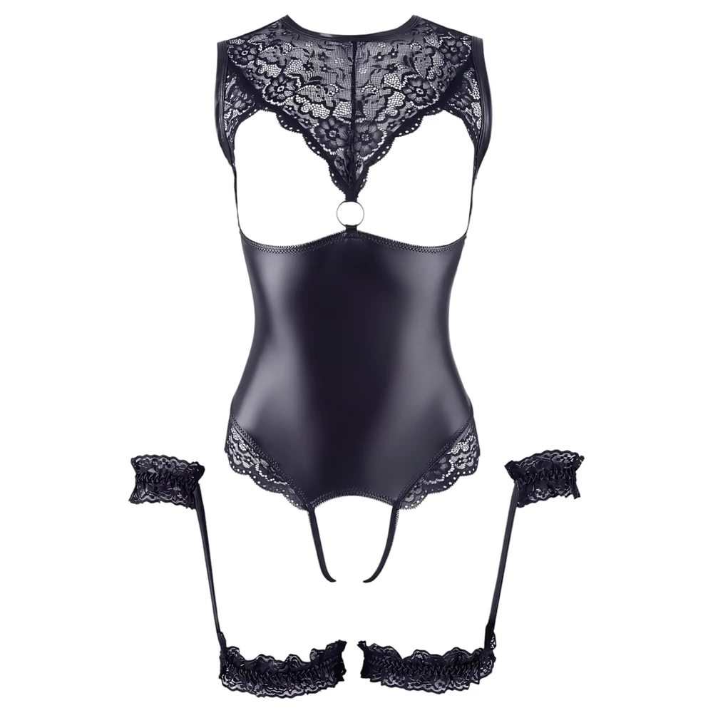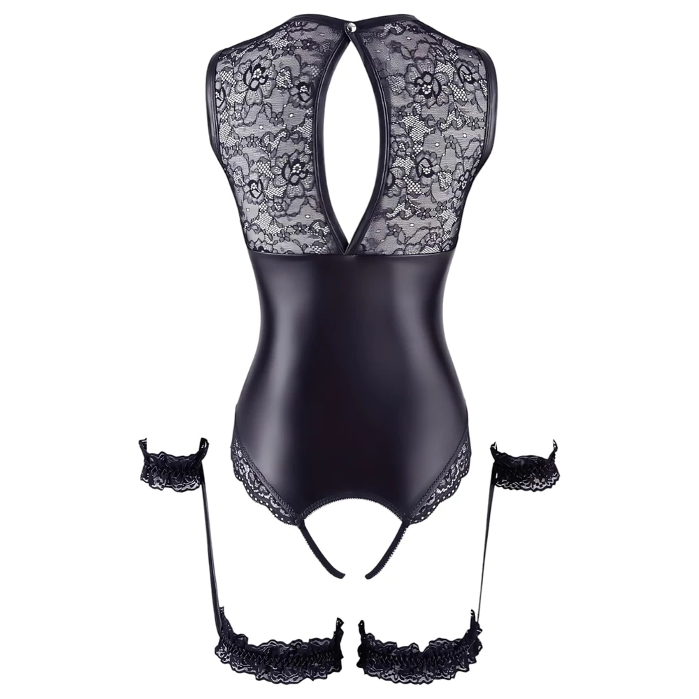 Cottelli Bondage - fényes nyitott body és kar bilincs (fekete)