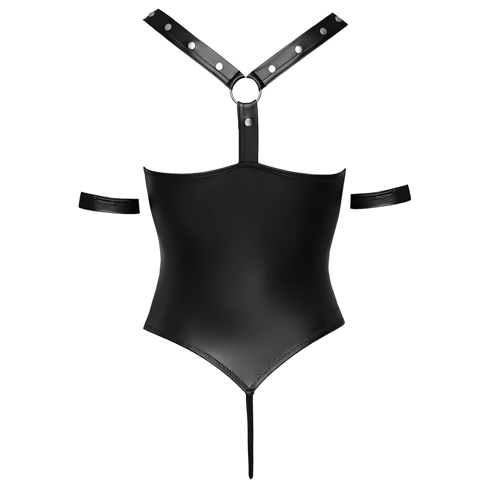 Cottelli Bondage - fényes, gyűrűs, nyitott body (fekete)