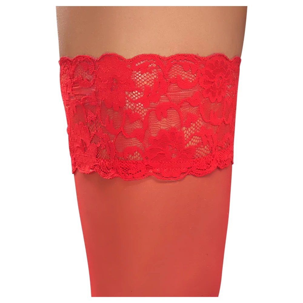 - 1 pár piros combfix, 9 cm-es csipkeszegéllyel és szilikon megerősítéssel