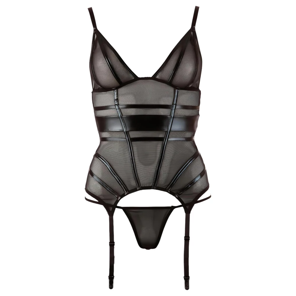 Ez a szexi, áttetsző harisnyatartós felső csillogó dekor-csíkokkal kiemeli vonzerődet és garantálja az érzéki élményt!