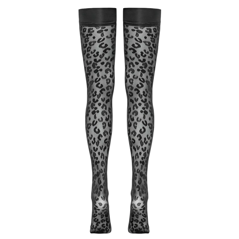 Cottelli Legwear - párduc mintás combfix (fekete)