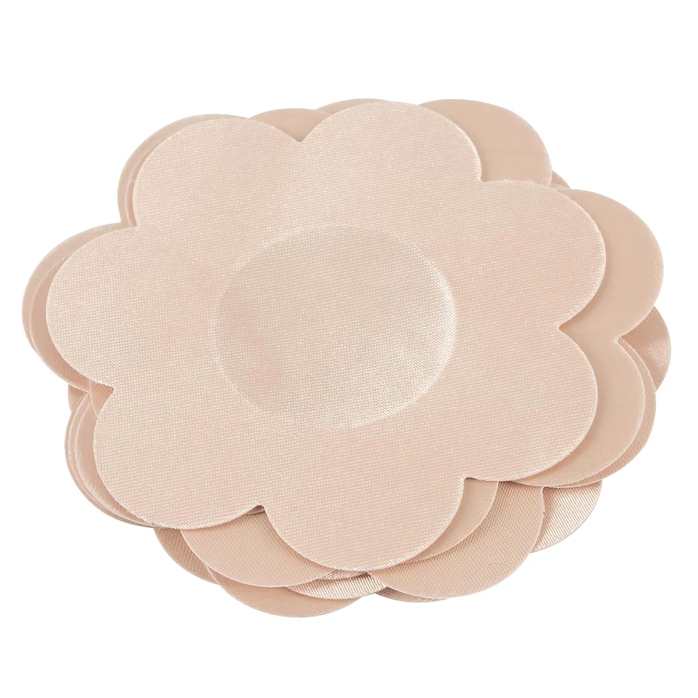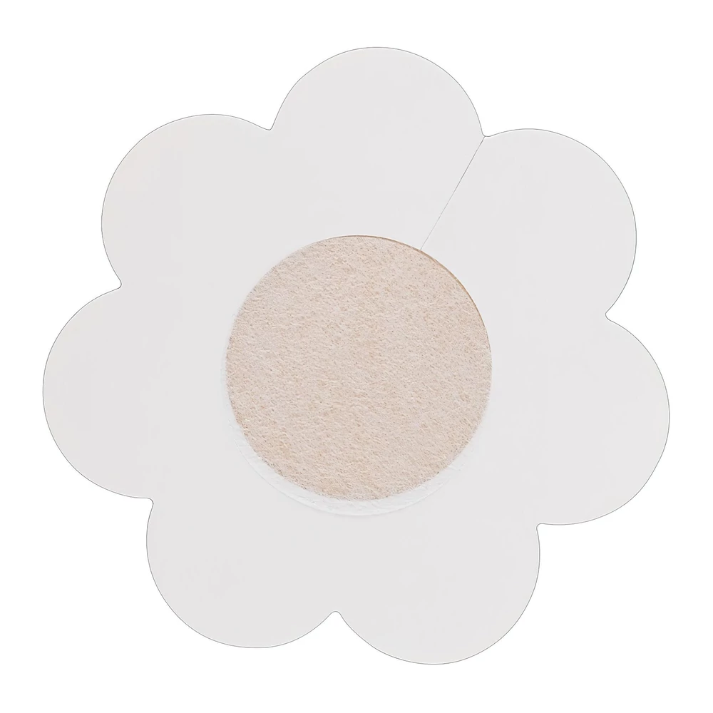 - 6 pár (12 darab) öntapadós mellbimbó tapasz, virág formájú, natúr színben.