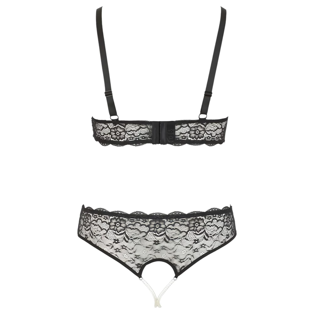 Cottelli Plus Size - gyöngyös melltartó szett (fekete)