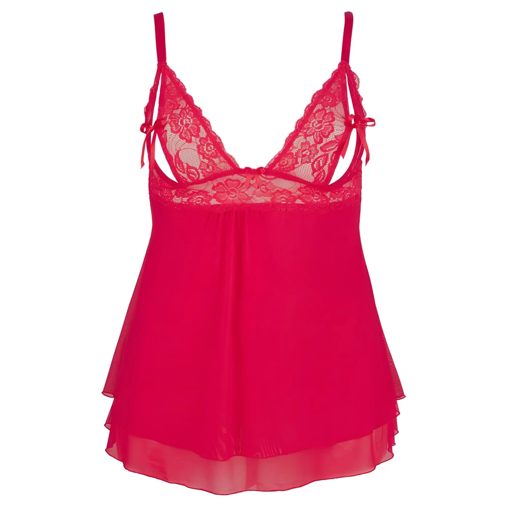 - 1 db piros babydoll áttetsző csipkés felsőrésszel.