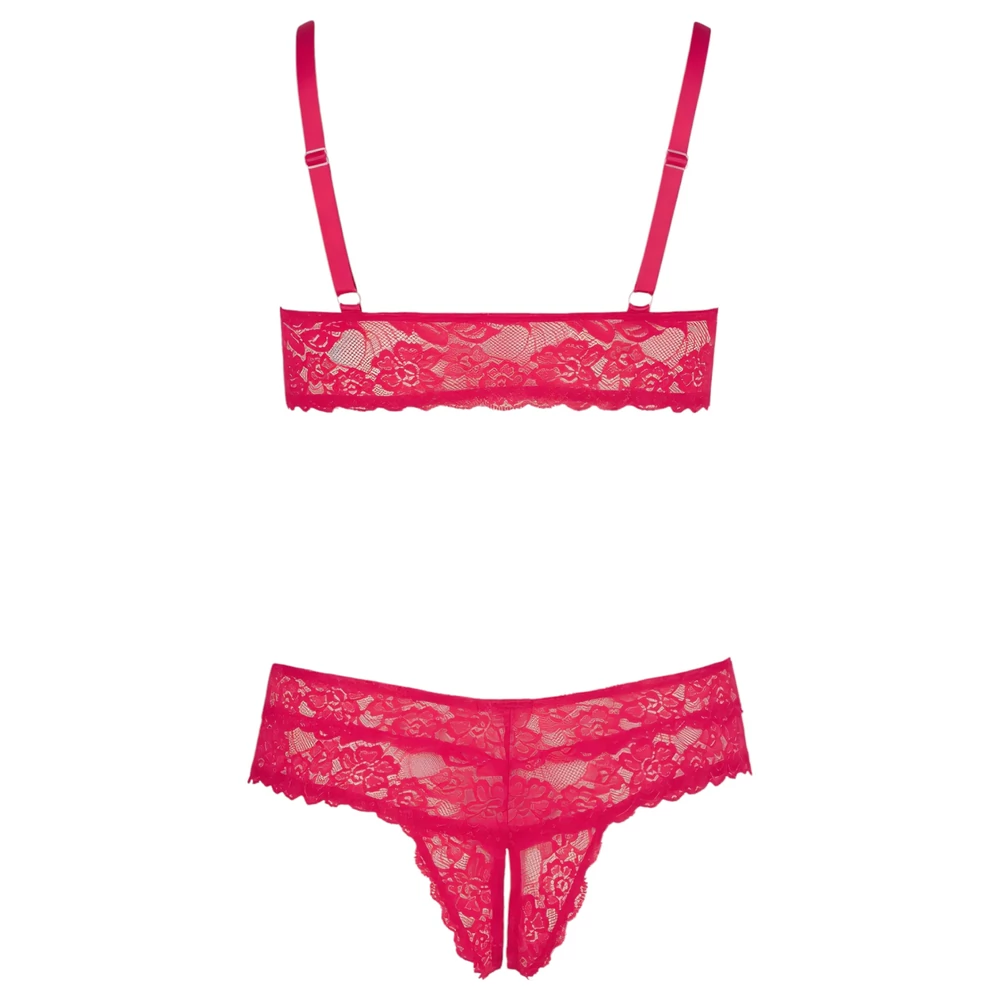 Cottelli Plus Size - puha csipke melltartó szett (piros)
