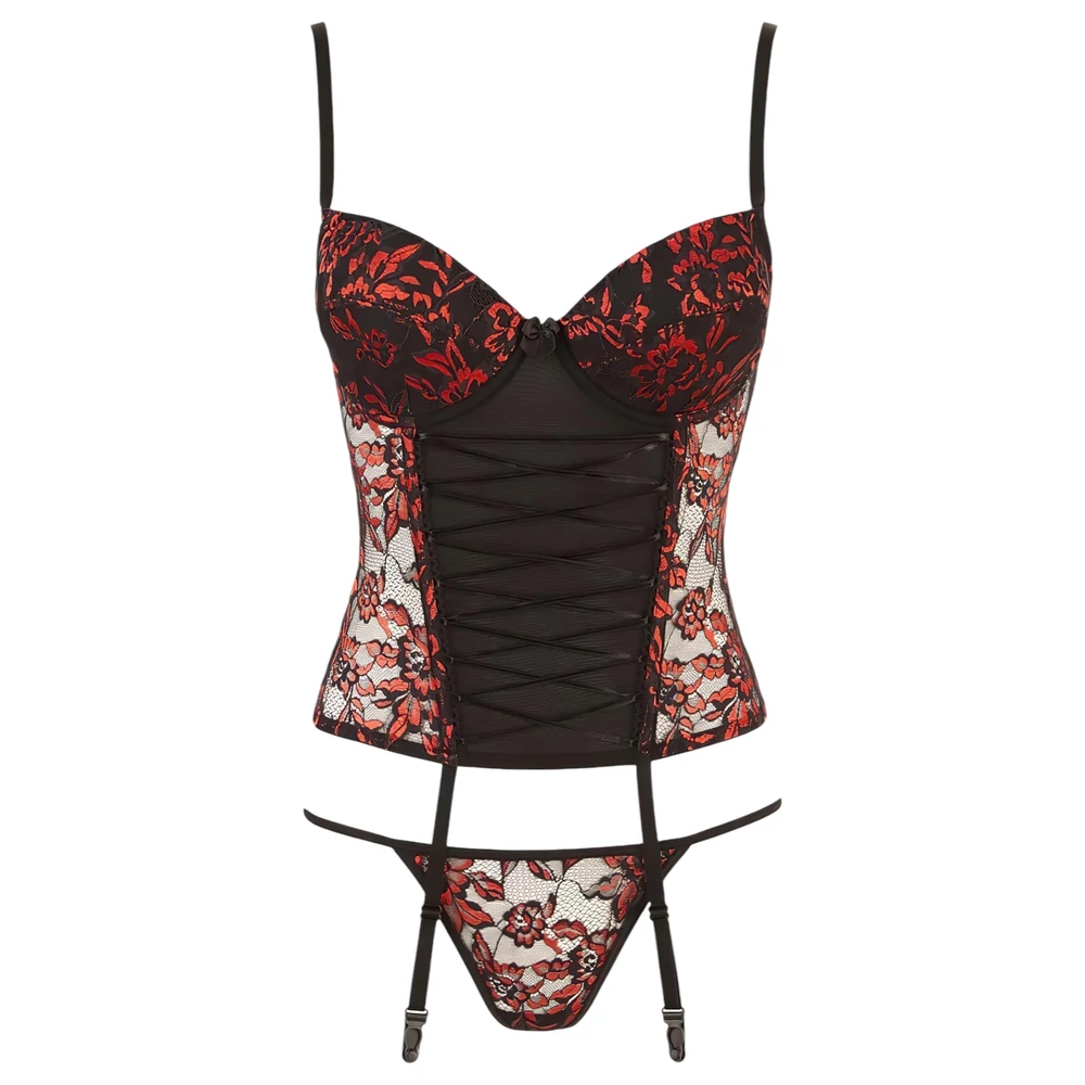 Cottelli - Rózsás fűző és tanga (piros)