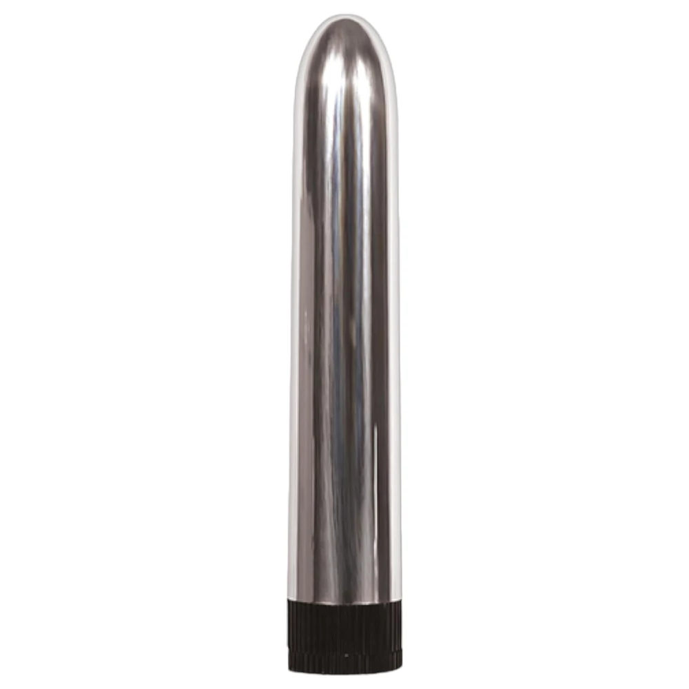 - króm vibrátor - 17,8 cm hosszú, 15,2 cm behelyezhető hossz, 2,5 cm szélesség (2 x AA elemmel - NEM tartozék)