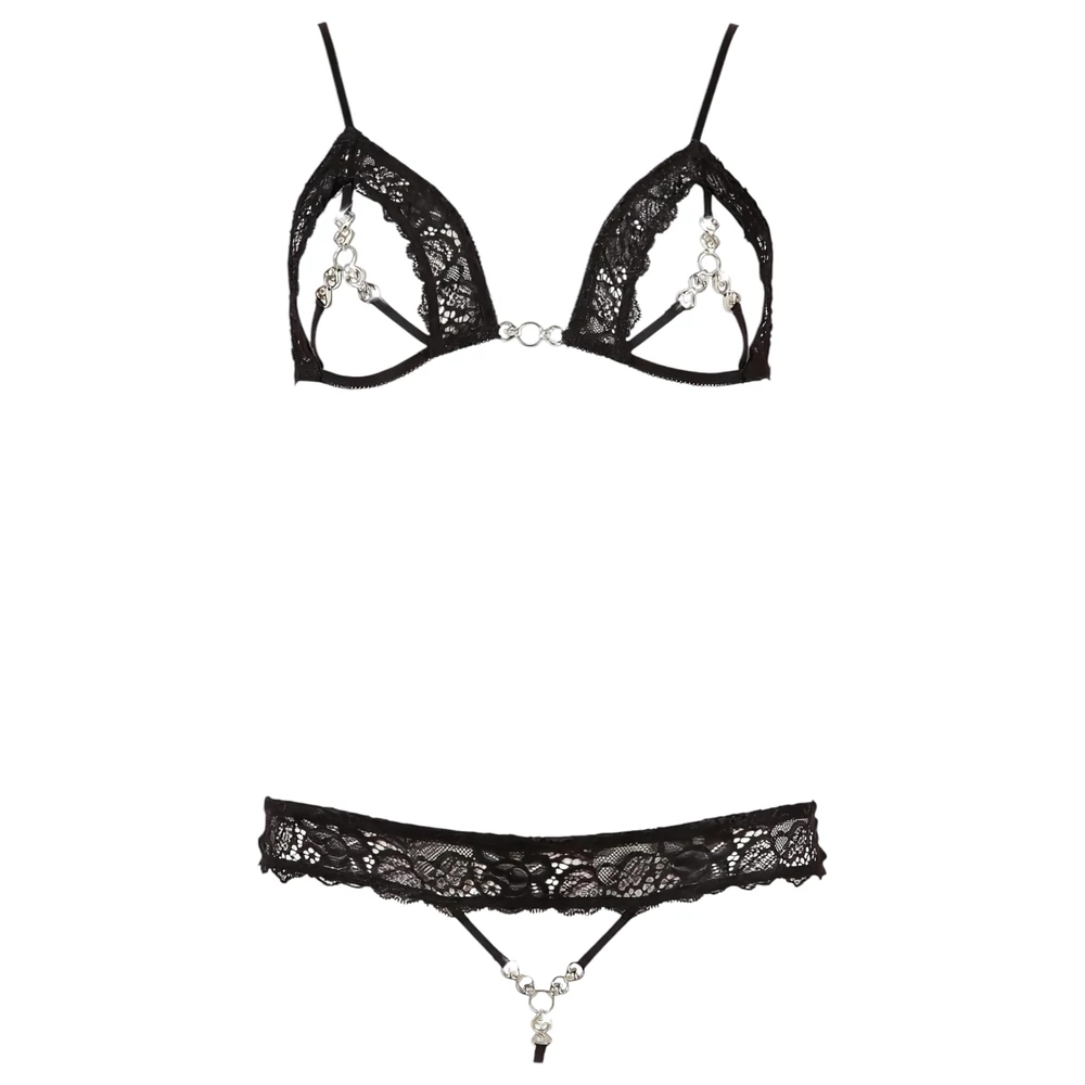Csábítóan merész és elegáns csipkeszett ragyogó strasszokkal – az Abierta Fina Extravagáns csábítás melltartó szett garantáltan felejthetetlenné teszi a megjelenésed!