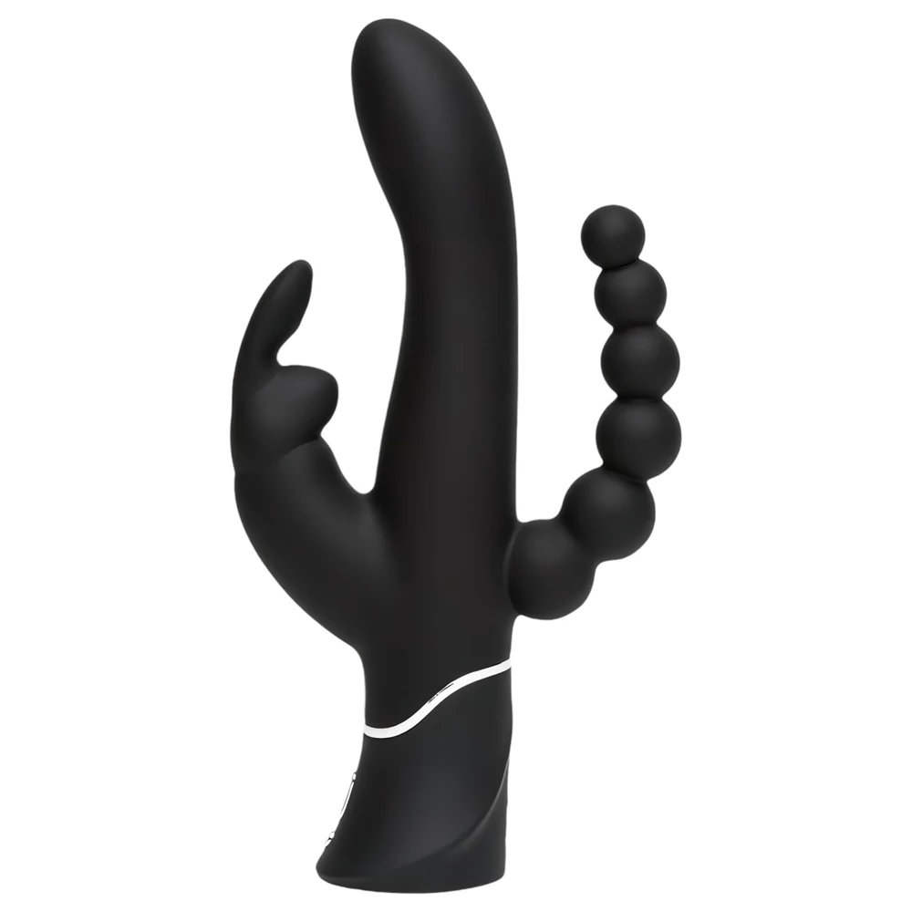 Happyrabbit Triple - akkus csikló-és análkaros vibrátor (fekete)
