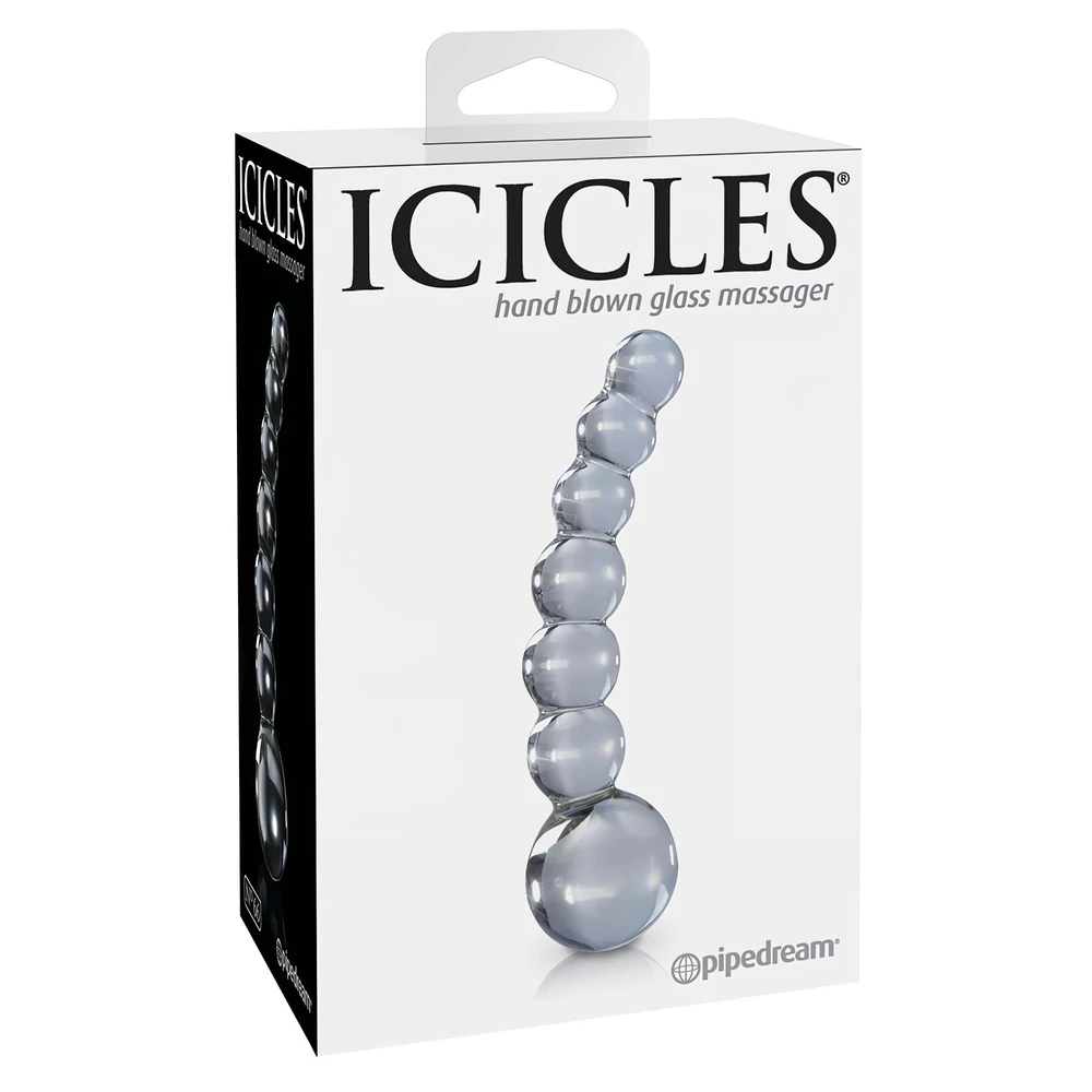 Icicles No. 66 - íves, gömbös, üveg dildó (átlátszó)