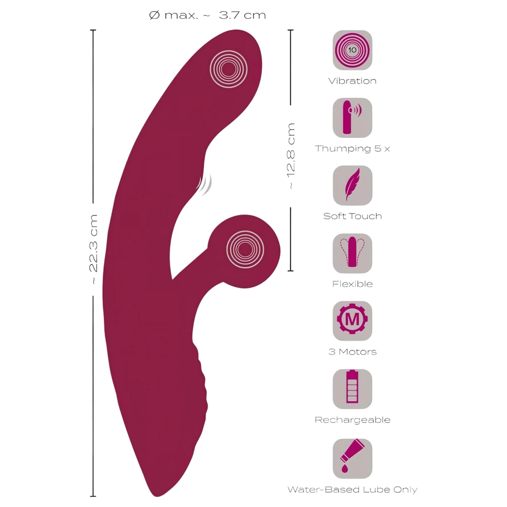 Használat előtt kenj elegendő mennyiségű vízbázisú síkosítót a vibrátorra. Helyezd be a hüvelybe úgy, hogy a csiklóizgató golyó a csiklód felé nézzen. Élvezd a különböző rezgési és ütögetési módokat a vezérlőgombok segítségével.
