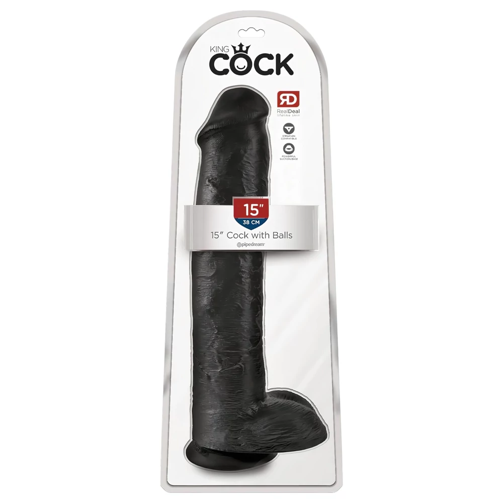 King Cock 15 - tapadókorongos, herés dildó (38cm) - fekete