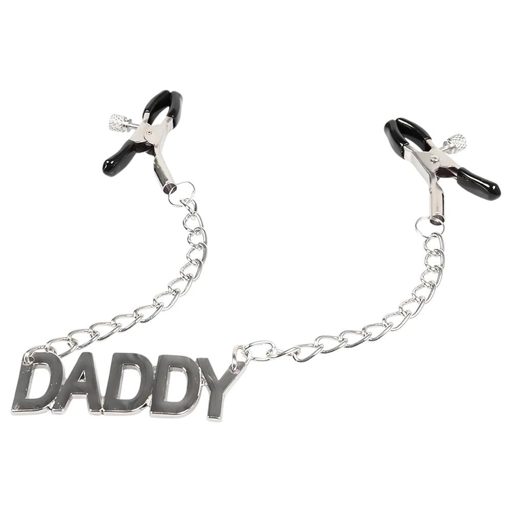 Helyezd a csipeszeket a mellbimbókra, majd állítsd be a kívánt szorítást a csavar segítségével. A lánc és a Daddy felirat nemcsak vizuálisan izgató, hanem fokozza az élményt is. Használat előtt és után javasolt a mellbimbók finom masszírozása a keringés serkentésére.