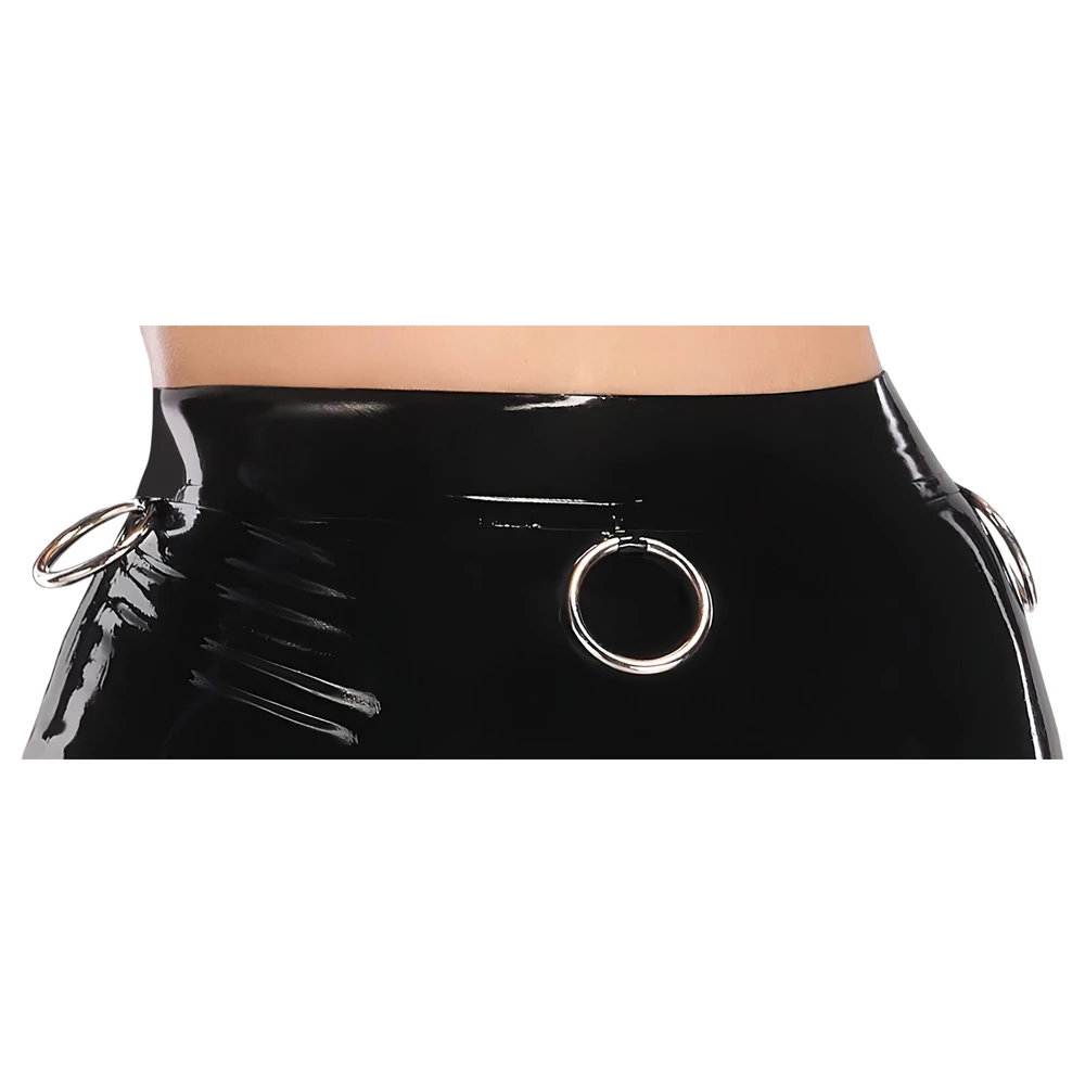 - 1 darab térdig érő latex szoknya dekoratív fémgyűrűkkel, hátul cipzárral