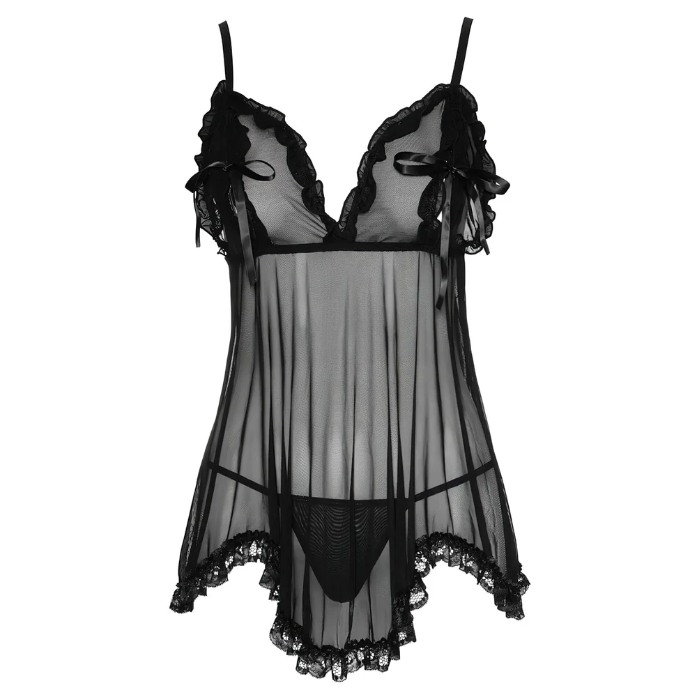 - Finom csipke és fodros díszítés – Az anyag áttetsző és elegáns csipkéből készült, amely nemcsak szexi, de rendkívül kényelmes is.