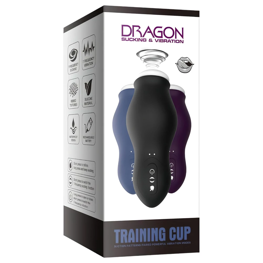 Lonely My-Dragon - akkus, szívó-rezgő maszturbátor (fekete)