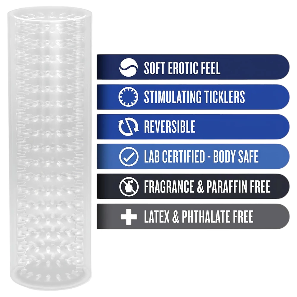 Ez a rugalmas és puha maszturbátor szorosan körülöleli a péniszt, így teljes elmerülést és fokozott stimulációt biztosít. A belső, apró tüskék finoman masszírozzák a péniszt, miközben az áttetsző kialakítás vizuális élményt is nyújt. Nyitott végű, így bármilyen péniszhosszhoz alkalmazkodik, és partnerrel is használható előjáték vagy orális szex közben.