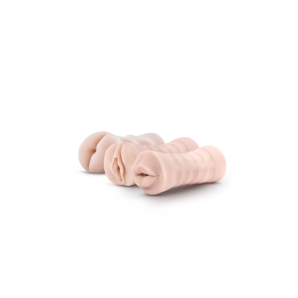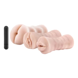 Valódi punci, száj és popsi maszturbátor ebben a hiánypótló szettben! A maszturbátorokhoz pedig egy kis rúdvibrátor is jár, amelyet a megfelelő nyílásba helyezve, páratlan élményt adhatsz a farkadnak!