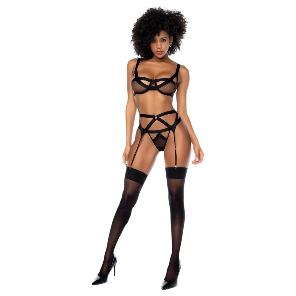 - Hozzá illő harisnyatartó öv és tanga a teljes szettért