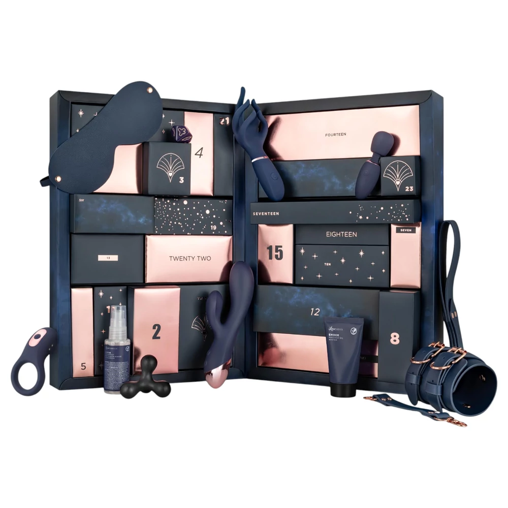 - 24 különleges ajándék: minden nap egy új erotikus játék vagy kényeztető meglepetés vár, hogy fokozza a vágyat és a meghitt pillanatokat.