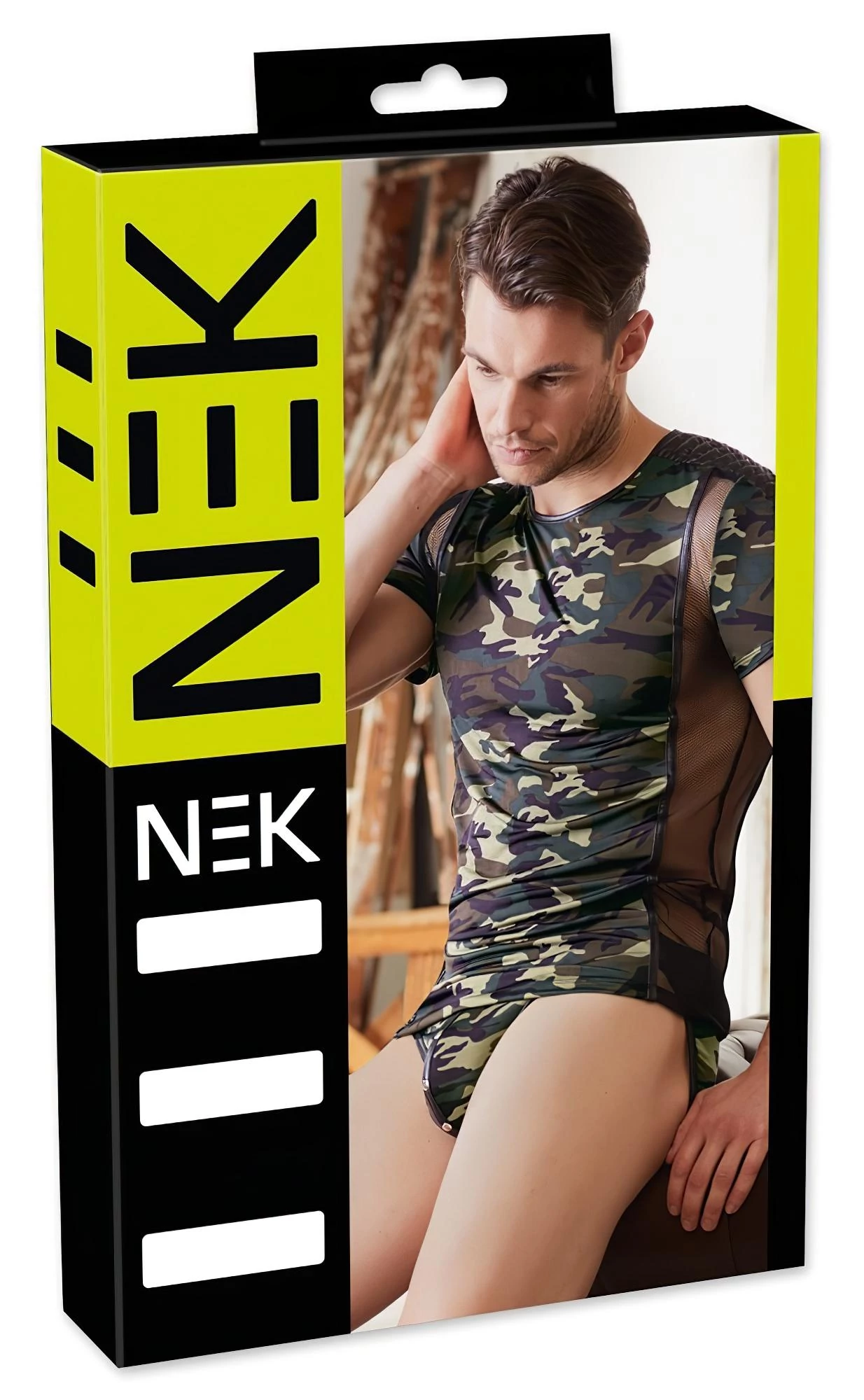 - Szín: terepmintás test, fekete necc betétekkel és bőrhatású díszítéssel