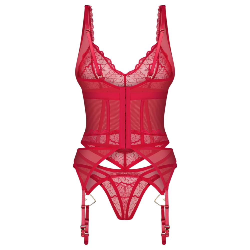 Obsessive Cupide Desir - átlátszó csipkés felső szett (piros)