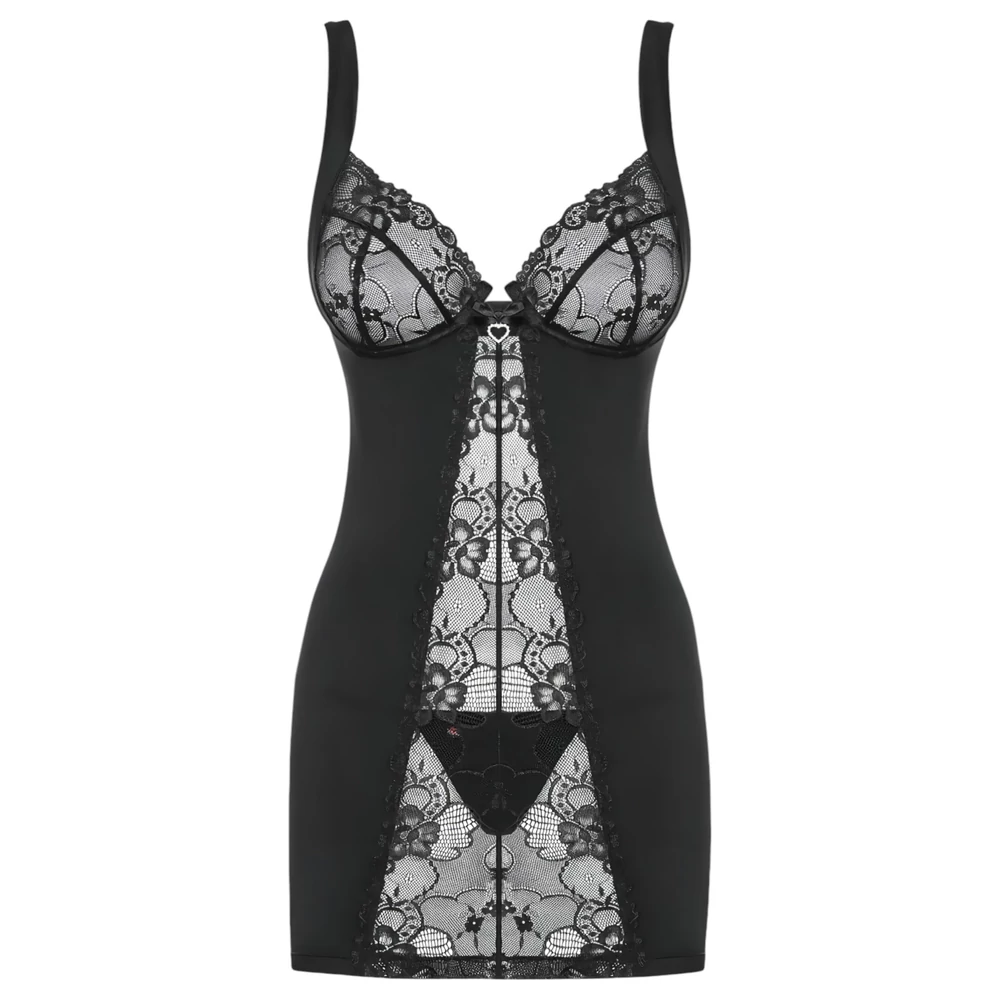 Klasszikus, fekete színben pompázó, évfordulókra, ajándéknak is tökéletes hálóruha pikáns részletekkel.