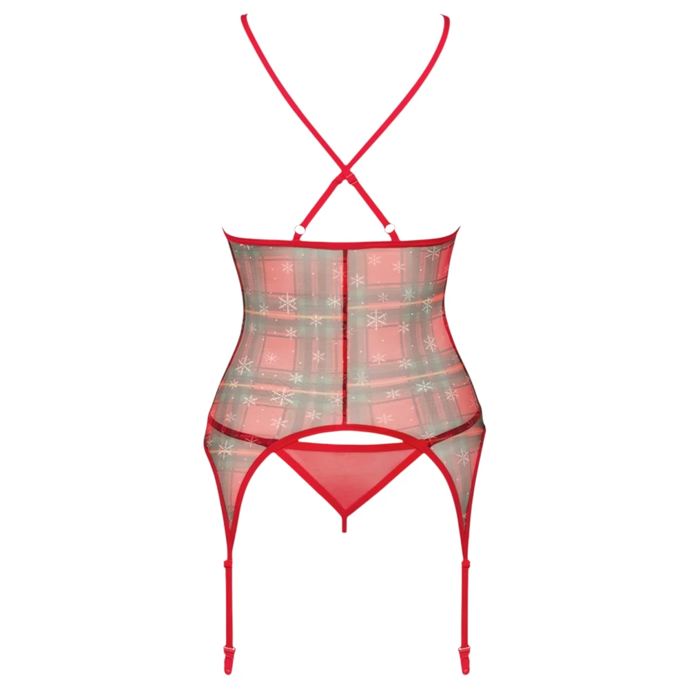 Az Obsessive Jollymore szett egy ünnepi hangulatú és érzéki fehérnemű összeállítás, amely piros kockás strech anyagból és csipkés elemekből készült.