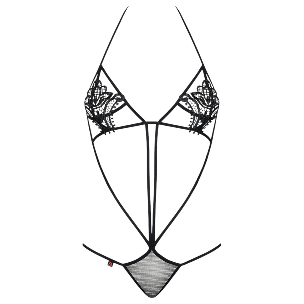 Obsessive Luiza - tulipános, pántos body - fekete (S/M)