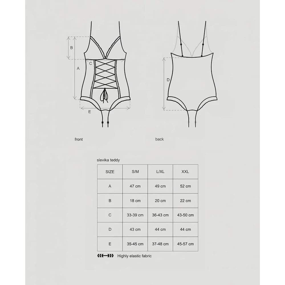 Obsessive Slevika - elöl fűzős, nyitott csipke body (fekete)
