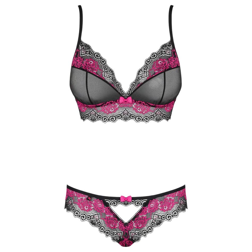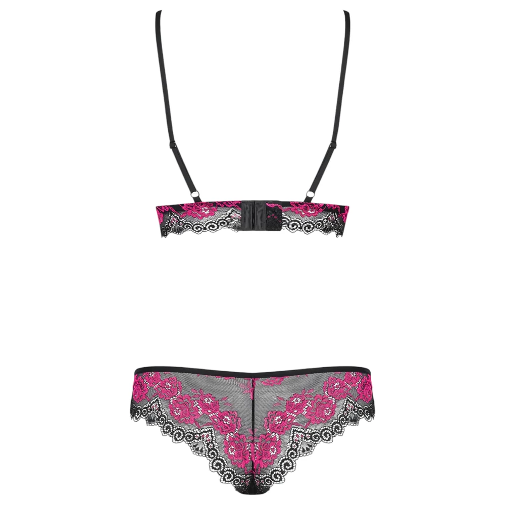 Obsessive Tulia - csipkés fehérnemű szett (fekete-pink)
