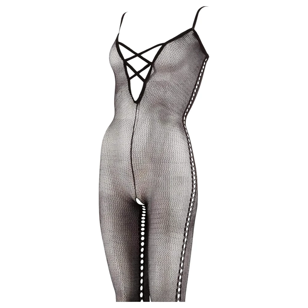 Ez a rendkívül szexi fekete, hálós anyagból készült catsuit tökéletes választás, ha valami igazán izgatót keresel!