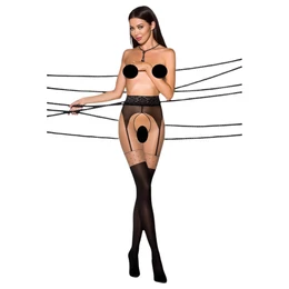 Passion Ti Open 003 - harisnyatartó hatású harisnya (fekete)