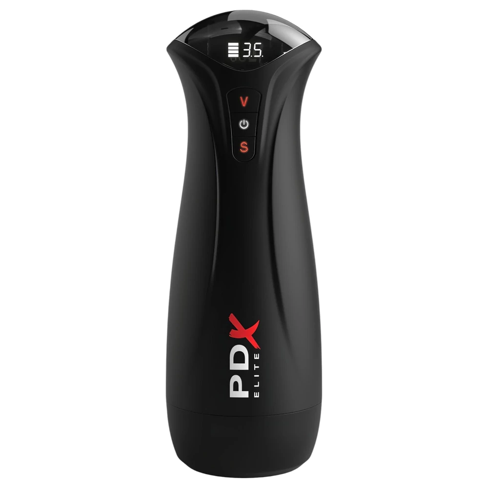 PDX Elite - szívó, rezgő maszturbátor (fekete)
