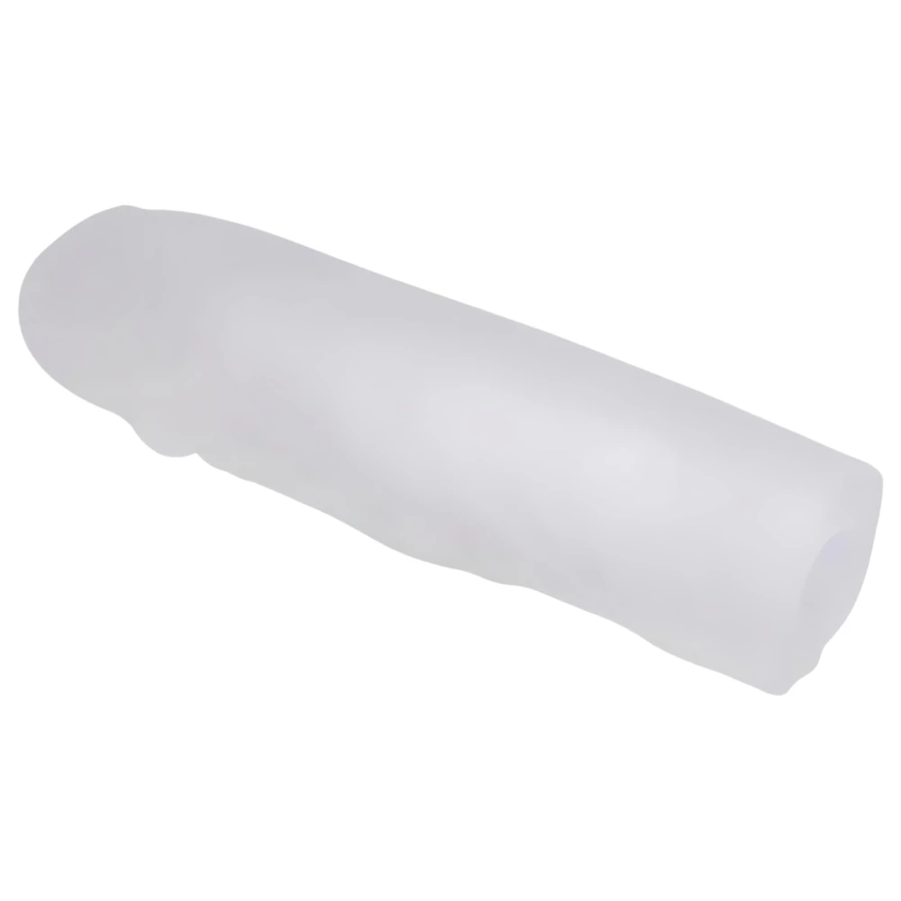- Húzd fel a péniszfeltétet enyhén síkosított állapotban az erektált péniszre, majd élvezd a megnövelt méret adta örömöket