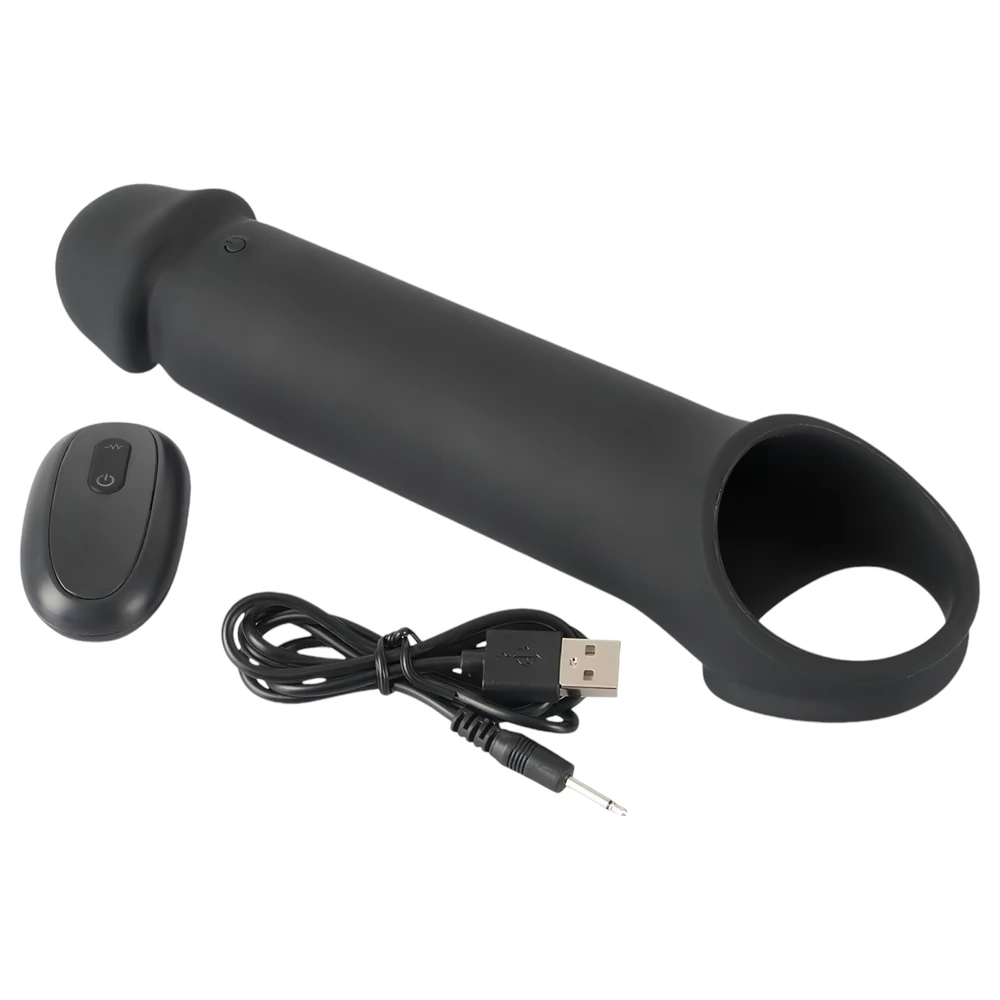 Rebel - akkus, rádiós vibrációs péniszköpeny (fekete)