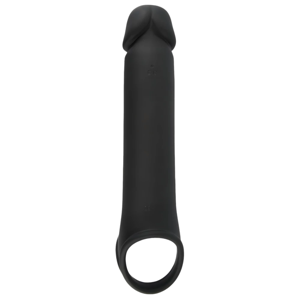 Bizsergető rezgéssel felszerelt, bőrbarát, vastagító és erősen hosszabbító hatású péniszköpeny, biztonságos, heregyűrűs kialakítással.