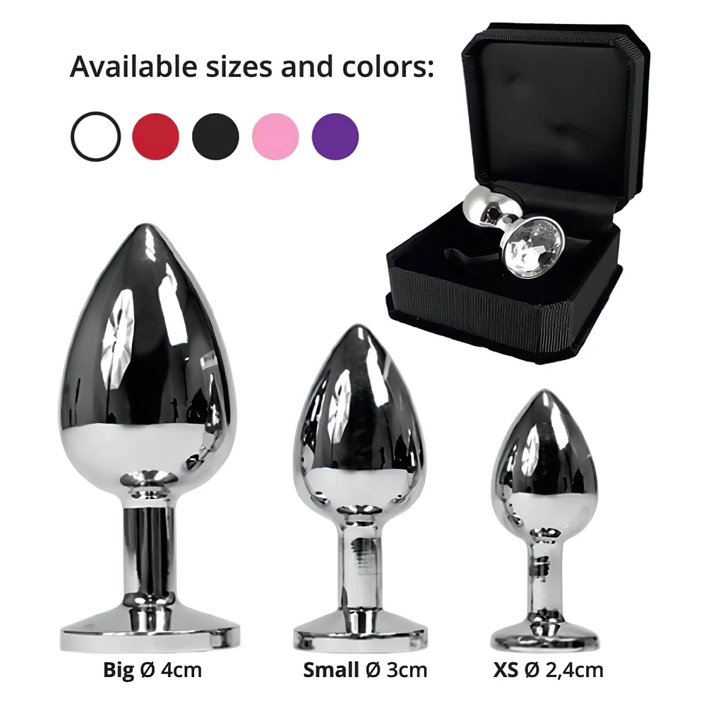 Rimba XS - fekete köves, fém anál plug (ezüst)