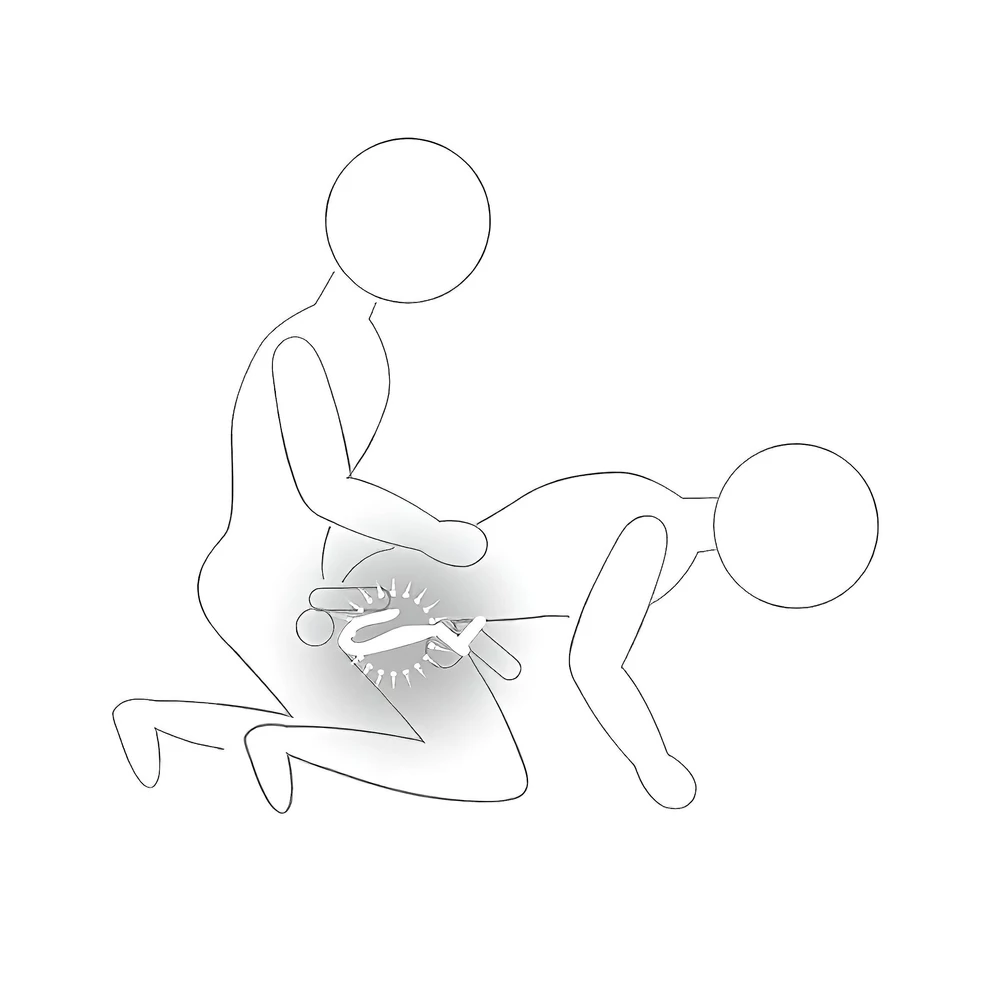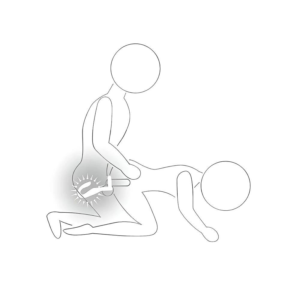 Kicsit síkosítsd be péniszed, majd félmerev, vagy merev állapotban húzd rá a vibrátortól távolabb eső gyűrűt a péniszre, a közelebb esőt pedig a herék tövére, ezt követően síkosítsd popsinyílásod és az anál vibrátort, hajlítsd a megfelelő formára. Amikor már kellően felkészítetted popsidat óvatosan hatolj a vibrátorral ánuszodba (szár feléd nézzen).