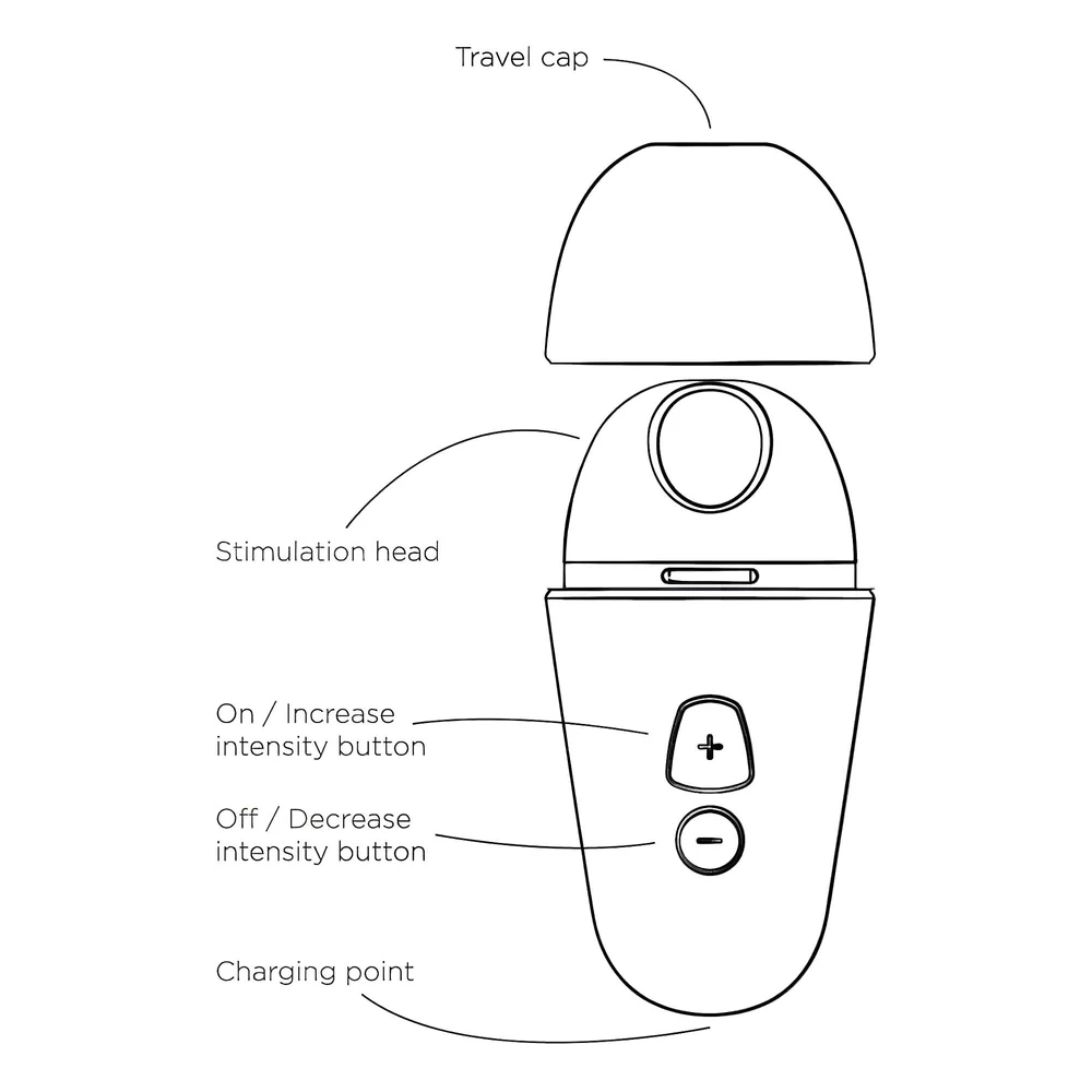 A stimulációs fejre és a csiklódra vízbázisú síkosítót alkalmazva kezdd el a kényeztetést. A + gombot 2 másodpercig nyomva tartva kapcsold be a ROMP Free X-et. Helyezd a stimulációs fejet a csiklódra enyhe nyomással. Válogass a 10 intenzitási szint között a + és - gombok megnyomásával. A - gombot 2 másodpercig nyomva tartva kapcsold ki a készüléket.