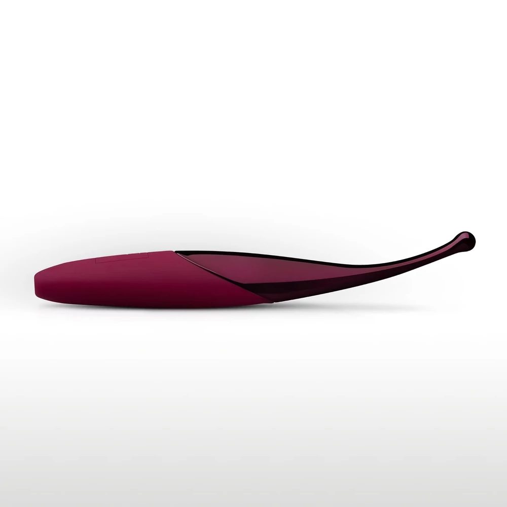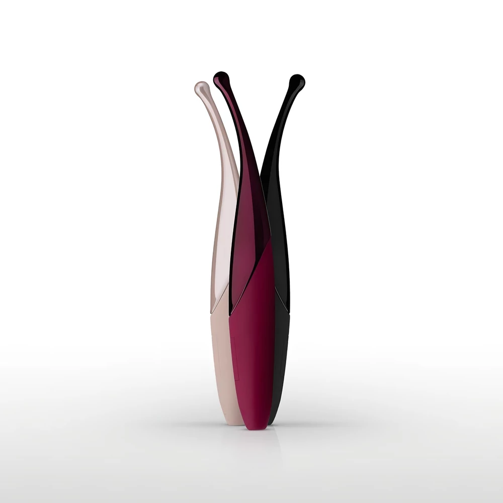 A nyélhez, szilárd anyagú vibro-nyúlvány csatlakozik, mely hajlított, akár egy elegáns toll. - A kis felület lehetővé teszi a csikló és a húgycső, valamint egyéb intim területek pontos ingerlését, hozzáférhetőségét.